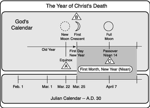 - *Crescent of the new moon is seen on Sabbath, March 25, A.D.30 = Nisan 1 – Jewish